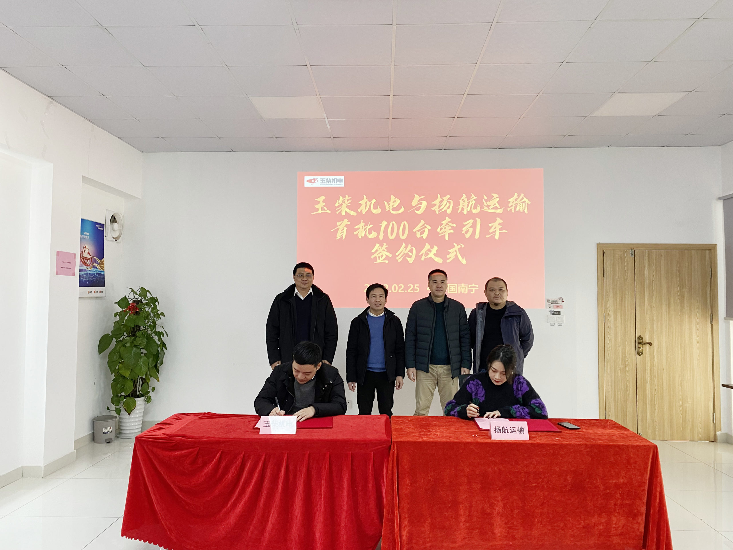 2月25日,玉柴物流集團旗下玉柴機電與廣西揚航運輸有限公司(以下簡稱揚航運輸)達成首批100臺牽引車簽約儀式。玉柴機電及揚航運輸雙方領(lǐng)導(dǎo)出席并見證簽約。
